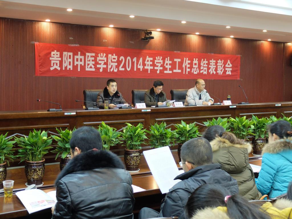 学生资助管理中心主任陈波总结2014年学生资助工作;学生处处长韦韬总结2014年学生思政教育与日常管理、武装及国防教育、大学生心理咨询与服务和毕业生就业等工作。第二临床医学院副书记彭玉、基础医学院副书记王羿就本院的学生工作交流发言;受表彰的辅导员代表吴洪江、杜清作发言。