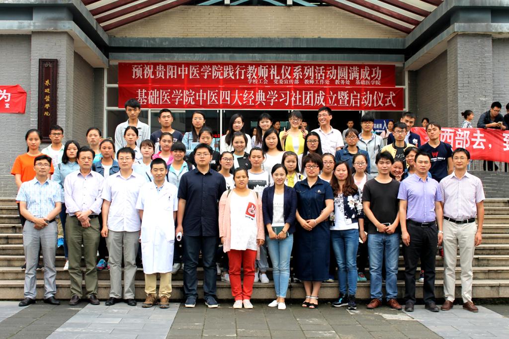 为进一步引导贵阳中医学院广大学生认知传统、尊重传统、继承传统、弘扬传统,本着为青年学子“搭建一个平台,培养一种思维,培育一批人才”的理念,6月15日,基础医学院中医经典学习社团正式成立。学校教务处田维毅处长、宣传部赵俊涛部长、基础医学院党委副书记王羿、副院长杨长福出席启动仪式。社团指导教师、教师代表和全体社团成员共计50余人参加了启动仪式。
