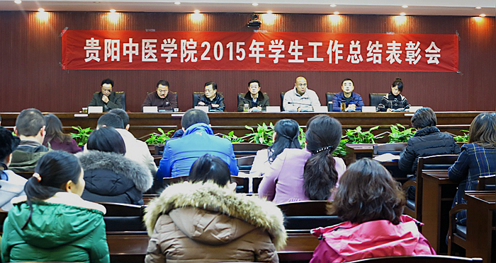 2015年学生工作总结表彰大会1月7日上午在我校花溪校区行政楼举行。学校党委副书记朱洪波、副院长于浩出席会议。
