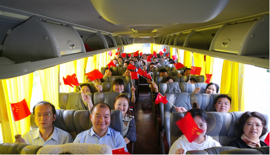 唱红歌,激昂旋律颂祖国。下午3:30,大家在返程的车上拿起了小红旗,《不忘初心》《我和我的祖国》《说句心里话》《强军战歌》等一首首耳熟能详的歌曲在车厢里传唱,红旗汇成一片红色的海洋,歌声在车厢里飘荡,让人感受到了伟大祖国70年来的光辉历程,是革命先辈用鲜血换来的,新时代的大学生和高校教师要把这种精神继承下去、发扬光大。