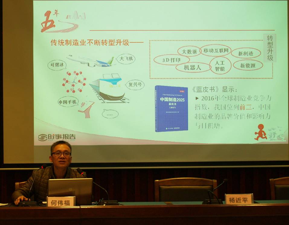 何伟福从十九大报告看中国自信、从经济发展看中国自信、从政治制度的优越性看中国自信三个方面进行了讲解。他认为,十九大报告立意高远、总揽全局、思想深刻,主题突出、论述精辟,具有很强的思想性、前瞻性、战略性、指导性,是我们党迈向新时代、开启新征程、续写新篇章的政治宣言和行动指南。他富有激情地讲述我国经济增长的质量变化、传统制造业的不断升级、新产业新生态新模式的层出不穷、我国消费潜力的进一步释放、我国经济对世界经济影响力的增强、重大工程成绩斐然等一系列经济发展的数据、事实和情况,向大家展现了一个昂扬向上、自信满满的大中国。他用鲜活的例子,通过中外制度的对比反映了我们政治制度的无比优越性,揭示了我们充满自信的制度根源。