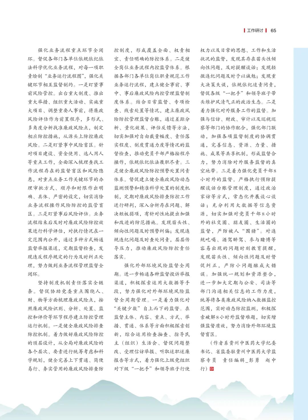 日前,2025年第45期《当代贵州》在“工作研讨”栏目刊发我校党委常委、纪委书记徐健署名文章《着力解决廉政风险排查防控中存在的问题》。