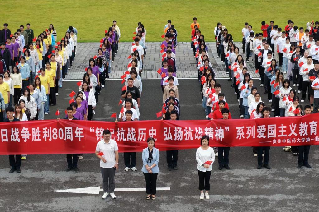 盛世华诞,举国同庆。10月1日,学校在花溪校区举行“铭记抗战历史 弘扬抗战精神”升国旗仪式,庆祝中华人民共和国成立76周年,表达对祖国的深切热爱和美好祝福,进一步弘扬爱国主义精神,激励师生以昂扬姿态奋进新征程。