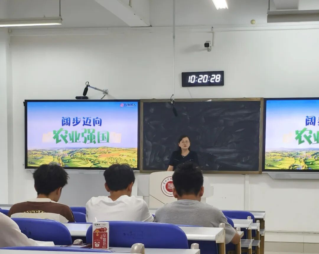 周英以《阔步迈向建设农业强国》为主题,为应用心理2022班上课。她围绕为何要加快建设农业强国、要建设什么样的农业强国、要怎样加快建设农业强国三方面,详细阐释了建设农业强国的必要性和重要性。希望同学们始终牢记习近平总书记的殷切嘱托,珍惜在校学习时光,努力学习专业知识,积极参加实践锻炼,提高解决实际问题的能力,为毕业后投身现代化强国建设打下坚实基础。