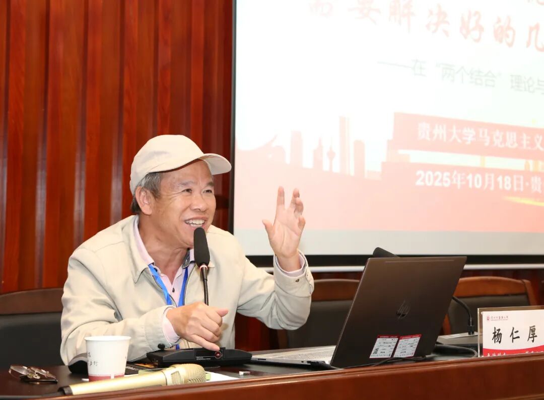 研讨会设4场主旨报告。华东师范大学马克思主义中国化系主任、博导陈红娟教授以“深入理解‘第二个结合’的三重维度”为题,深刻阐释“两个结合”的内在关系、内涵、意义。省社会科学院原院长、党委书记、博导吴大华教授以“在‘双创’(创造性转化、创新性发展)中弘扬中华优秀传统文化的贵州路径”为题,全面阐释贵州优秀传统文化资源及其当代价值。贵州师范大学马克思主义研究院院长、博导汪勇教授以“‘两个结合’及其构成要素分析”为题,阐释“两个结合”的提出背景、主要内容以及构成要素分析和“两个结合”的世界意义与价值。贵州大学马克思主义学院原党委书记、省科学社会主义暨政治学学会学术委员会主席杨仁厚教授以“弘扬中华优秀传统文化需要解决好的几个基础问题”为题,提出中华文化是多元一体,各族人民共同创造,要百家争鸣,融会贯通。