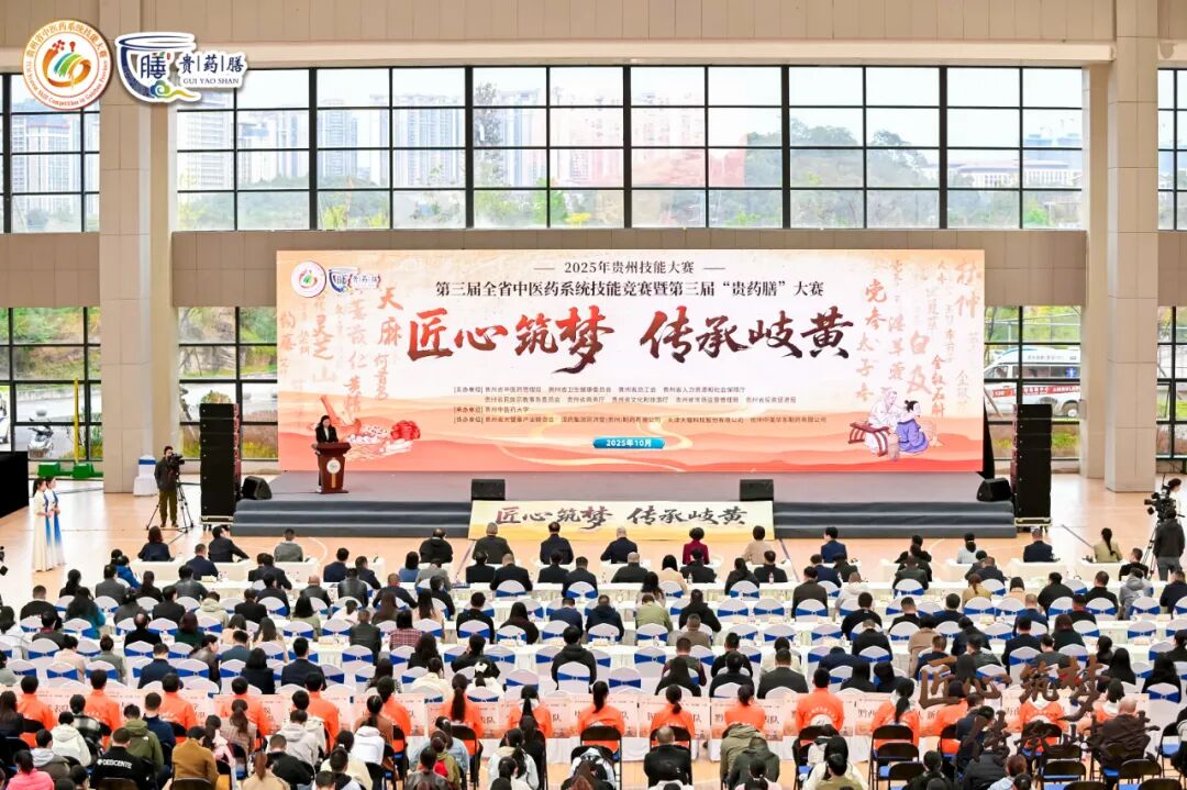 10月22日上午,由省中医药管理局联合省卫生健康委、省总工会、省人力资源和社会保障厅、省民族宗教事务委、省商务厅、省文化和旅游厅、省市场监督管理局、省投资促进局共同主办,贵州中医药大学承办的2025年贵州技能大赛——第三届全省中医药系统技能竞赛暨第三届“贵药膳”大赛在我校花溪校区北区体育馆拉开帷幕,并全程进行线上直播。