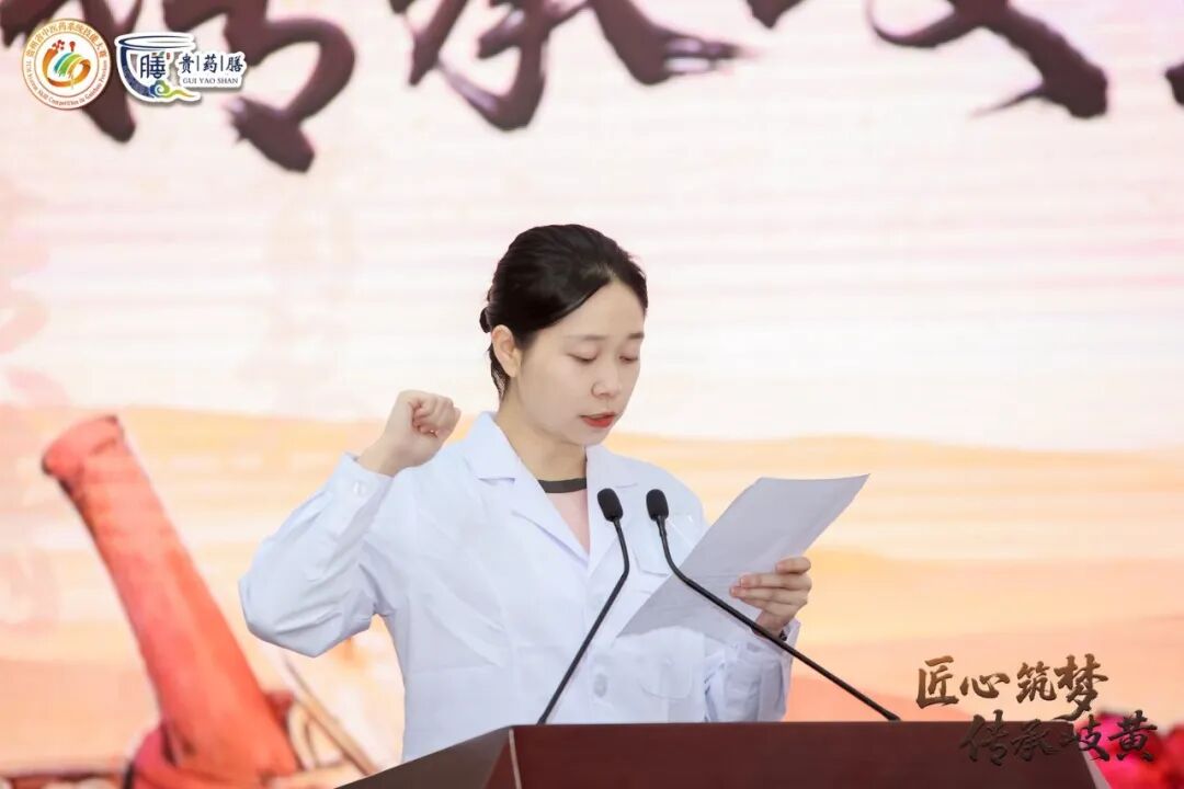 黔东南州中医医院住院医师袁小婷、段亚平教授作为参赛选手代表和裁判代表进行宣誓,承诺在比赛中切磋技艺、交流互鉴,展现中医药工作者扎实理论功底、娴熟操作技能、良好精神风貌;严格遵守竞赛规则,恪守职业道德,严格执裁,公正评判,确保比赛公平公正、有序进行。