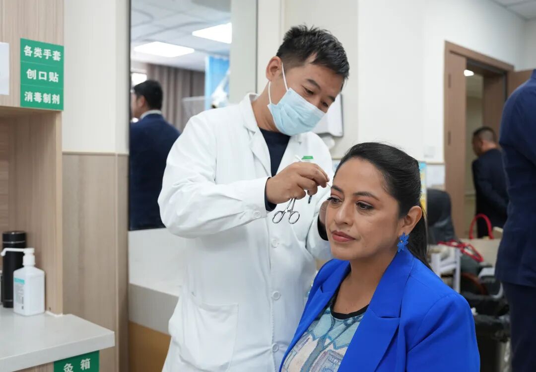 座谈会结束后,皮钦查省代表团实地考察第二附属医院红岩院区风湿免疫科、中药房、针灸推拿门诊等科室,近距离体验了中医传统针灸、推拿诊疗技法。