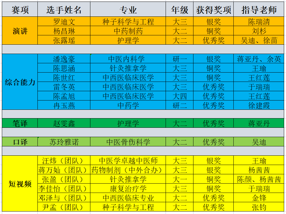 近年来,学校始终将赛事实践作为人才培养的重要抓手,积极为学生搭建锤炼能力、展示自我的实践平台。后续,我校将深化“以赛促学、以赛育人”,持续推动“家国情怀+国际视野”的应用型中医药人才培养体系建设,为中医药事业高质量发展夯实人才基础。
