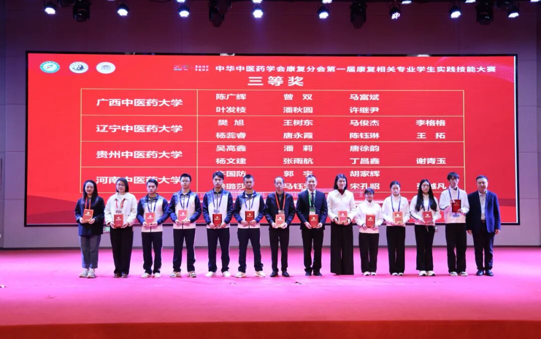 11月6日-8日,由中华中医药学会主办,河南中医药大学承办的第一届康复相关专业学生实践技能大赛在河南中医药大学举行。我校针灸推拿学院2022级康复治疗学和中医康复学专业学生杨文建、张雨航、丁昌鑫、谢青玉在潘莉、唐徐韵两位老师指导下,从来自全国各地中医药高等院校的20支队伍参赛中脱颖而出,以全国第6名的优异成绩斩获大赛三等奖。