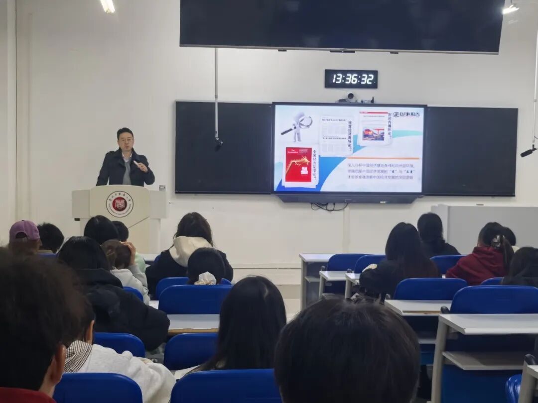 李兴为2025级袁家玑班授课,从“形”与“势”两个角度解析经济格局,勉励青年学生立足本专业找准与国家经济发展的契合点,以创新思维传承发展中医药事业,为经济高质量发展贡献力量。
