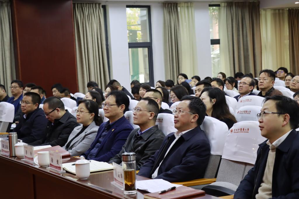 3月26日上午,学校在花溪校区行政楼会议室举办树立和践行正确政绩观学习教育读书班第二次专题辅导报告会,集中学习全国两会精神,深入学习贯彻习近平总书记关于树立和践行正确政绩观的重要论述,引导党员干部坚持人民至上、践行师生至上,进一步坚定理想信念、厚植为民情怀、砥砺实干担当,推动正确政绩观内化于心、外化于行,凝心聚力建设“国内一流、特色鲜明的综合性创新型中医药大学 ”,努力创造经得起实践、人民、历史检验的实绩。
