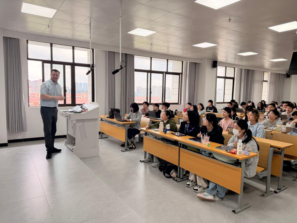 本次授课系我校与英国利兹贝克特大学合作项目2025-2026学年度第二学期线下教学内容,外方教师授课准备充分、课堂秩序良好、教学环节规范,学生课堂状态积极。朱星副校长全程认真听课,详细查看课程实施、课堂运行及教学保障情况,全面掌握项目教学实际开展情况。