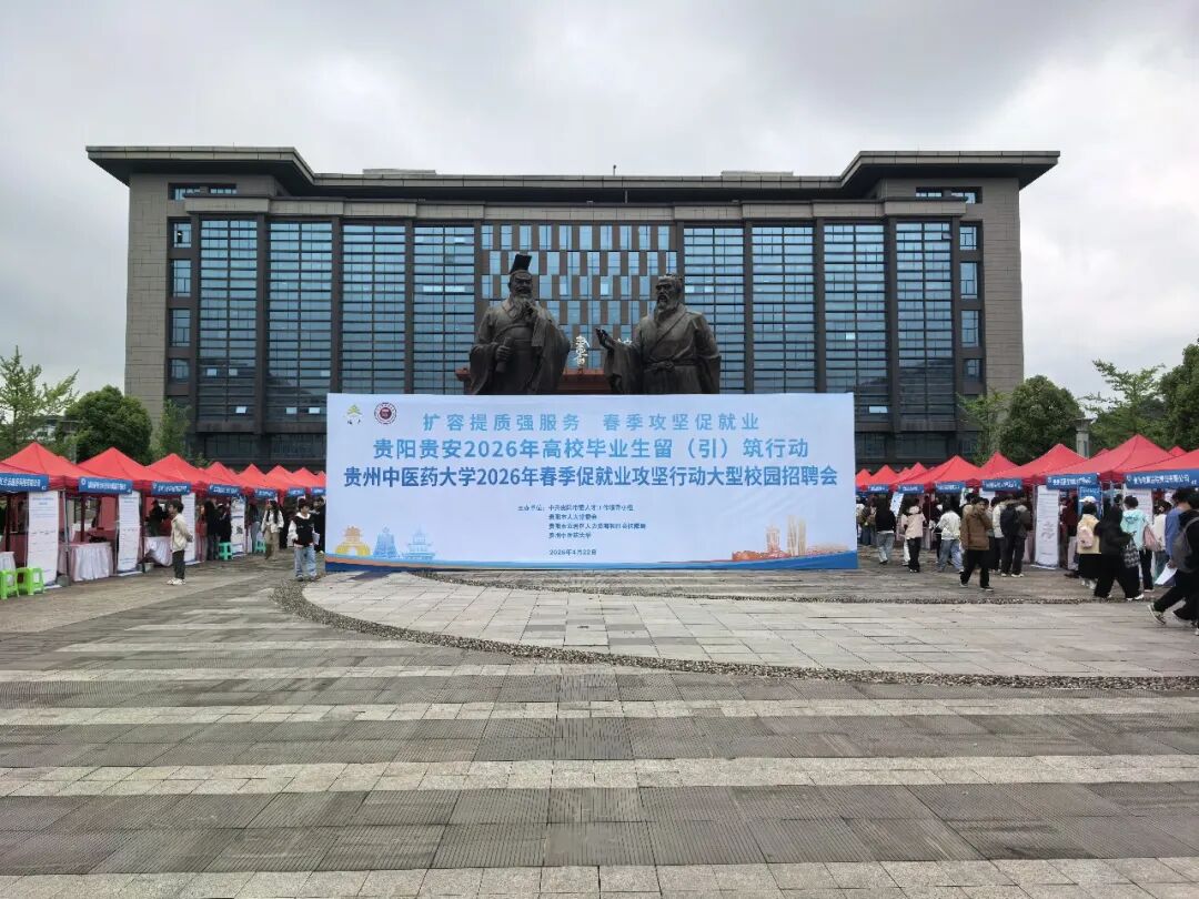 4月22日,贵阳市委人才工作领导小组、市人大常委会、市云岩区人社局和学校在花溪校区联合主办“‘扩容提质强服务 春季攻坚促就业’贵阳贵安2026年高校毕业生留(引)筑行动暨贵州中医药大学2026年春季促就业攻坚行动大型校园招聘会”,为毕业生求职就业搭建优质平台,进一步拓宽求职渠道。