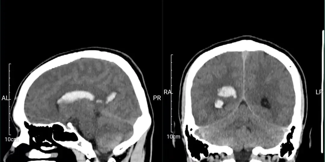 患者小余头颅CT检查结果明确提示:脑出血。 受访者供图。
