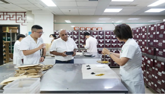 哈利勒先后来到针灸推拿学院、药用植物种质资源圃以及苗医药博物馆,观摩课堂教学,体验针灸实训智能教学设备。在二附院,哈利勒参观了中药房、儿科、针灸、推拿等特色科室门诊,了解了中药配制以及推拿、火龙灸等适宜技术。