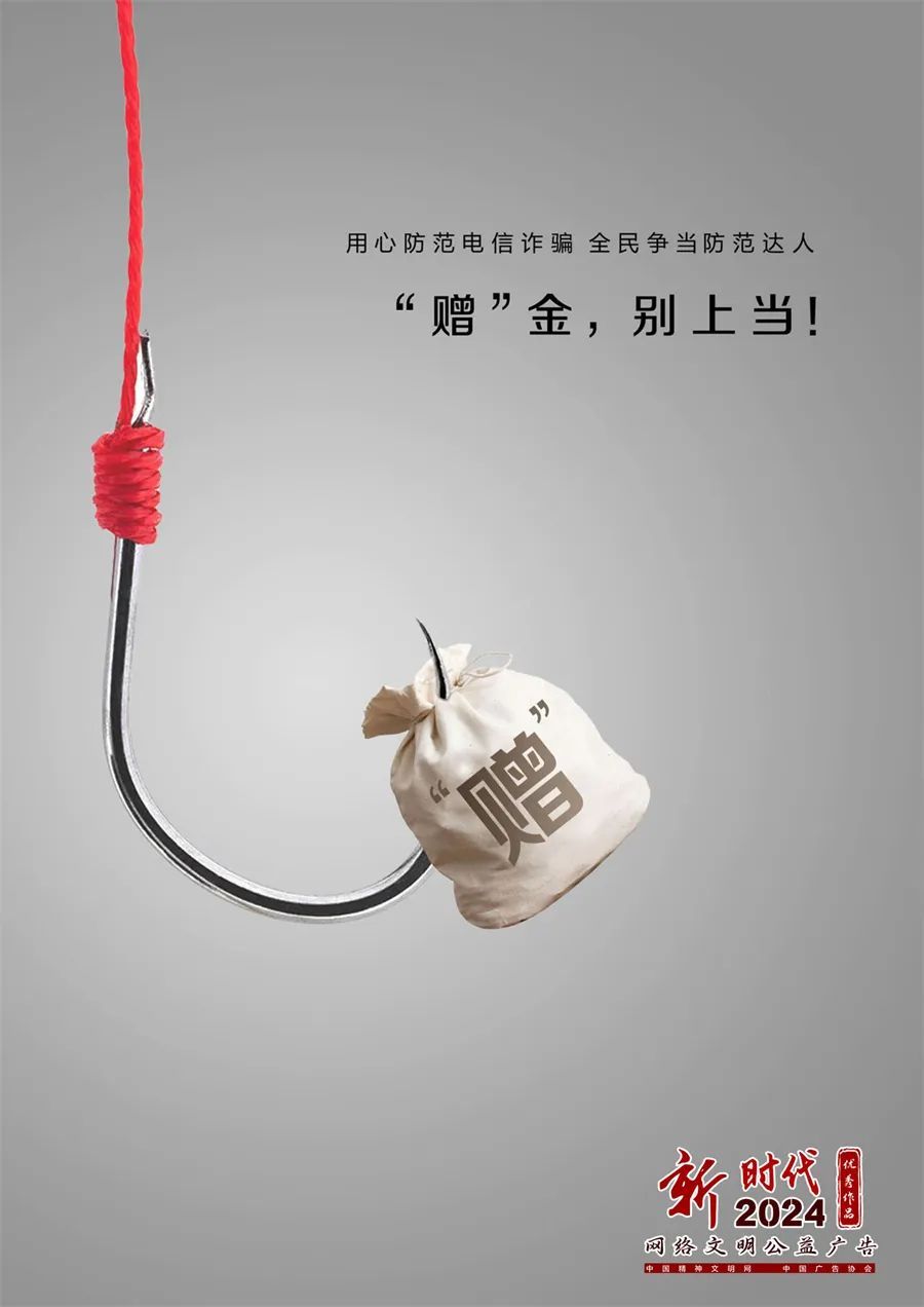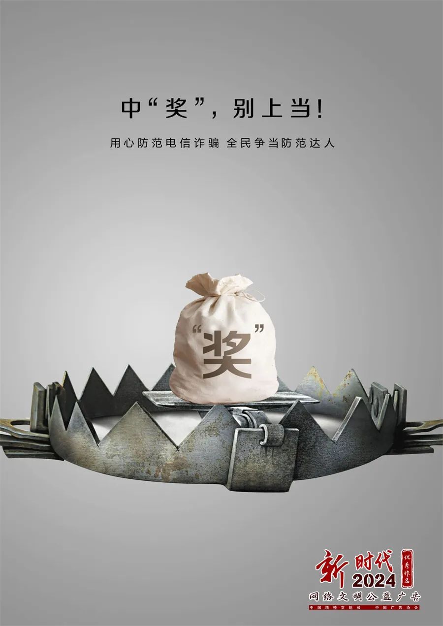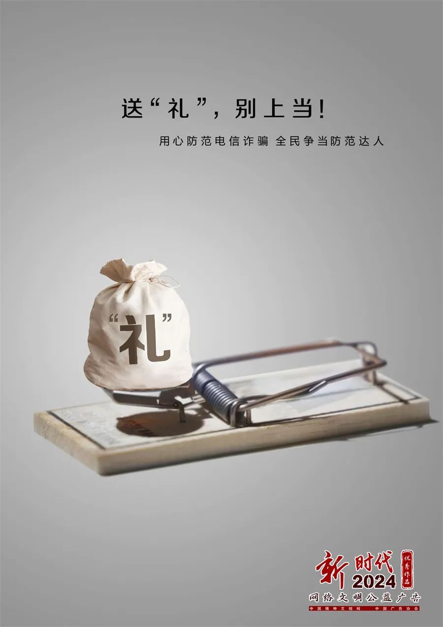 首页 首页 上一篇:2024年“新时代网络文明公益广告”优秀作品展播 下一篇:文明上网|2024年“新时代网络文明公益广告”优秀作... 用心防范电信诈骗|2024年“新时代网络文明公益广告”优秀作品展播 2025.08.29 11:24:32 中国文明网 弘扬主流价值、传播文明理念、传承中华优秀传统文化、培育时代新风。2024年“新时代网络文明公益广告”征集展示活动优秀作品近日公布,共有50件作品入选。今天给大家分享的是优秀作品《用心防范电信诈骗》。