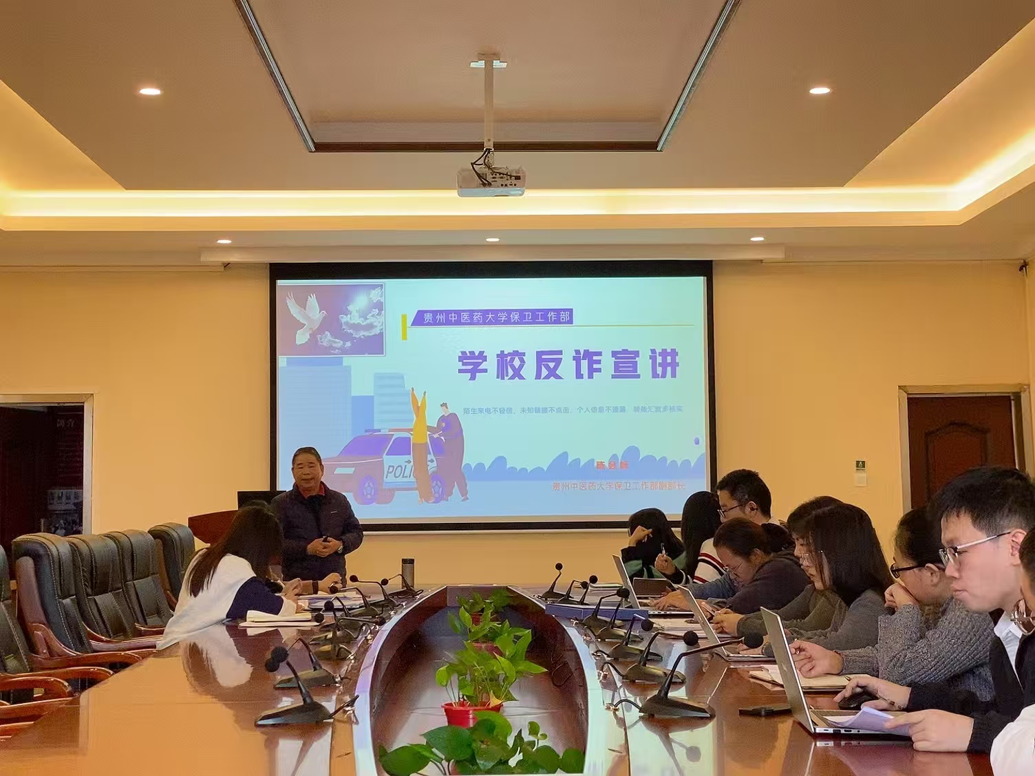 为进一步提升大学生防范电信网络诈骗的意识和能力,强化辅导员在安全教育中的关键作用,人文与管理学院新近在笃学楼四楼会议室开展辅导员反诈专题培训。保卫工作部副部长陈会标受邀主讲。学院党委副书记刘雨洁、学办负责人、全体专兼职辅导员参加。